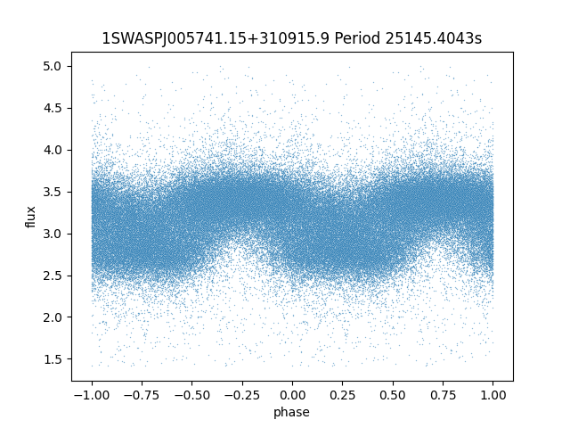 | SuperWASP ID | Mean Magnitude | Period (seconds) | Majority Classification | Folding flag | RA | Dec | Lightcurve |