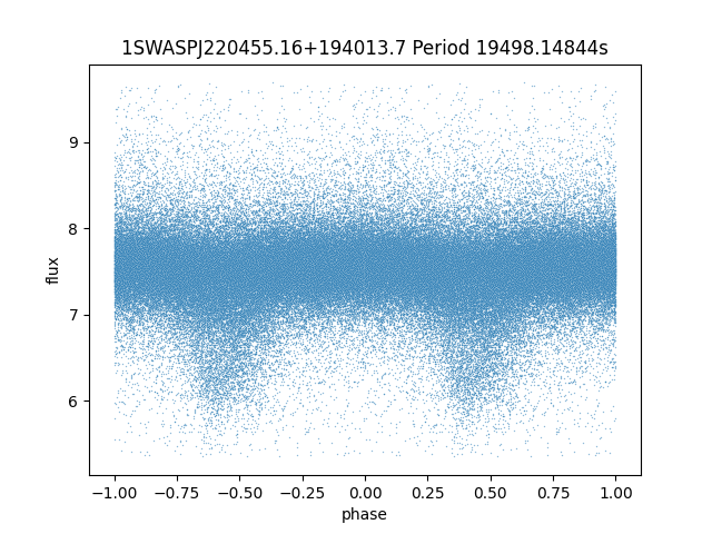 | 1SWASPJ220455.16+194013.7 | 12.81 | 19498.14844 ~ |