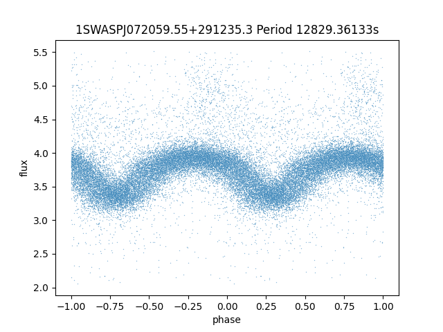 | 1SWASPJ072059.55+291235.3 | 13.57 | 12829.36133 ~ |