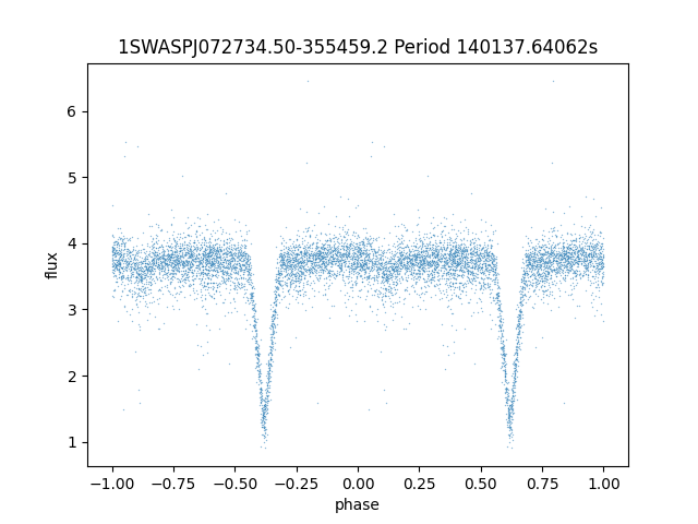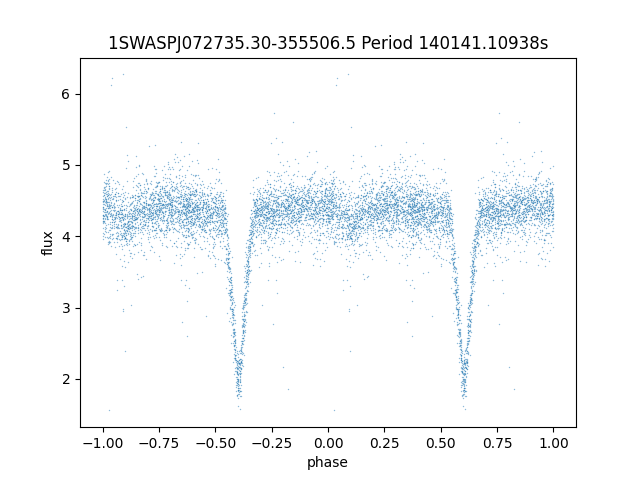 | 1SWASPJ072734.50-355459.2 | 13.63 | 140137.64062 ~ |