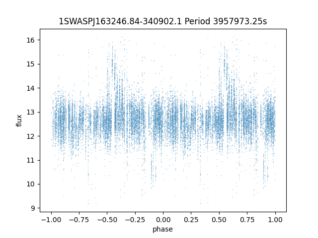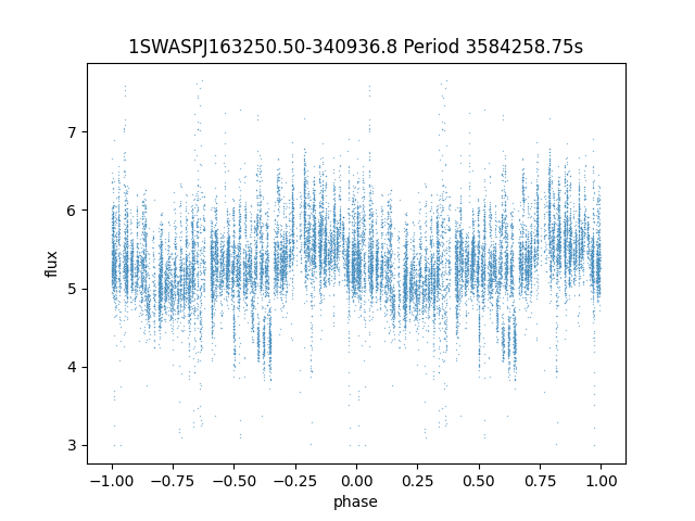| 1SWASPJ163246.84-340902.1 | 12.24 | 3957973.25 ~ |