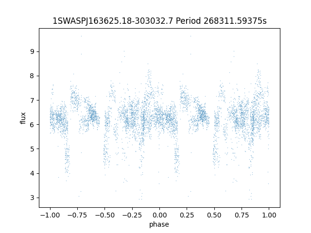 | 1SWASPJ163625.18-303032.7 | 13.01 | 268311.59375 ~ |