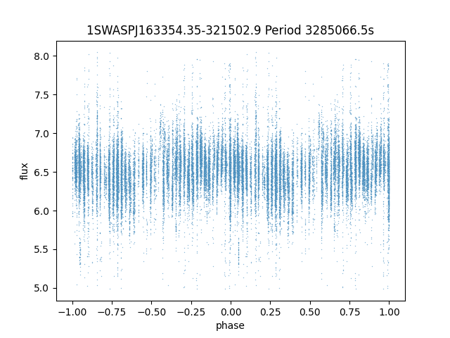 | 1SWASPJ163354.35-321502.9 | 12.97 | 3285066.5 ~ |