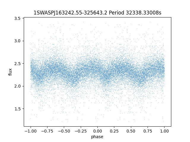 | 1SWASPJ163242.55-325643.2 | 14.09 | 32338.33008 ~ |