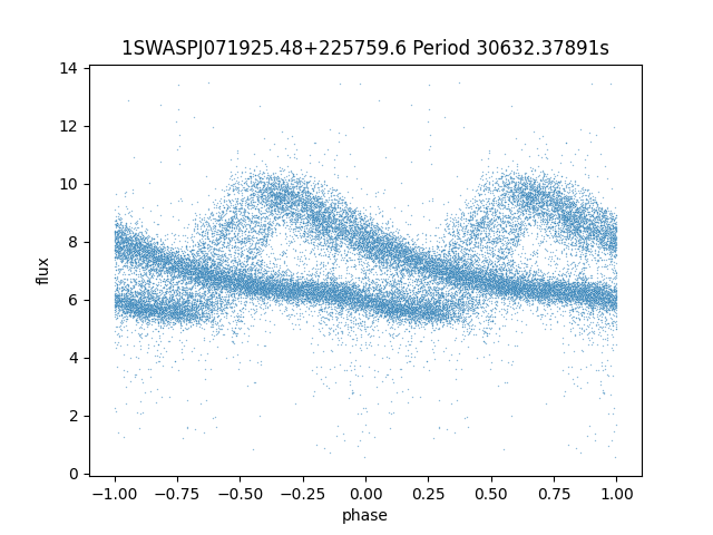 | SuperWASP ID | Mean Magnitude | Period (seconds) | Majority Classification | Folding flag | RA | Dec | Lightcurve |