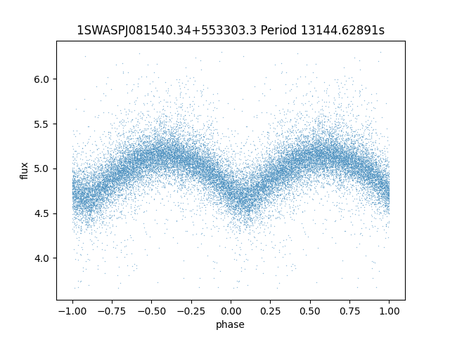 | 1SWASPJ081540.34+553303.3 | 13.26 | 13144.62891 ~ |