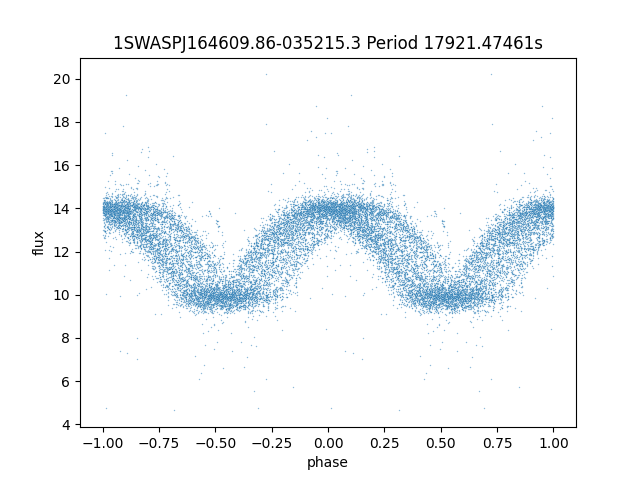 | 1SWASPJ164609.86-035215.3 | 12.29 | 17921.47461 ~ |