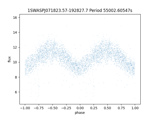 | SuperWASP ID | Mean Magnitude | Period (seconds) | Majority Classification | Folding flag | RA | Dec | Lightcurve |
