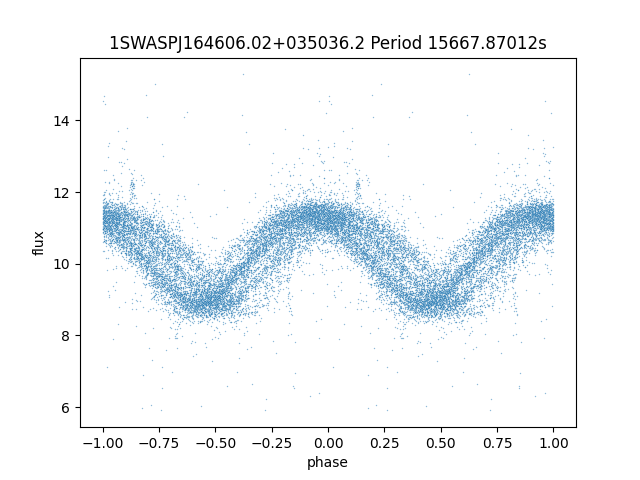 | 1SWASPJ164606.02+035036.2 | 12.47 | 15667.87012 ~ |