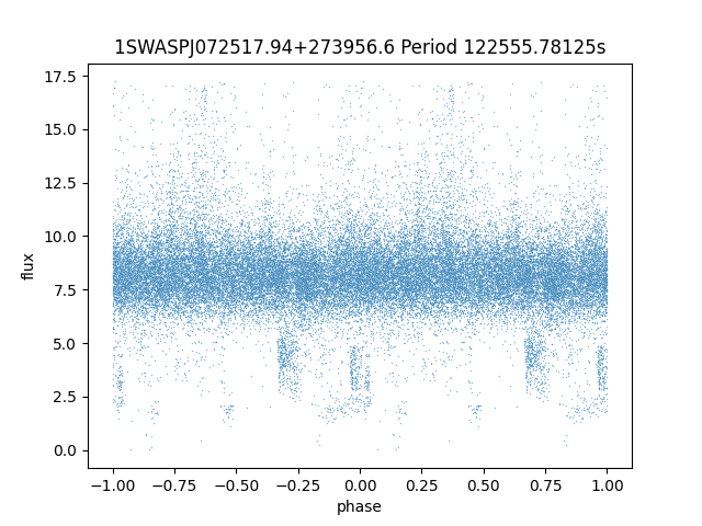 | 1SWASPJ072517.94+273956.6 | 12.71 | 122555.78125 ~ |