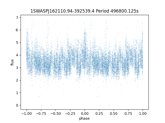 | 1SWASPJ162110.94-392539.4 | 13.64 | 496800.125 ~ |