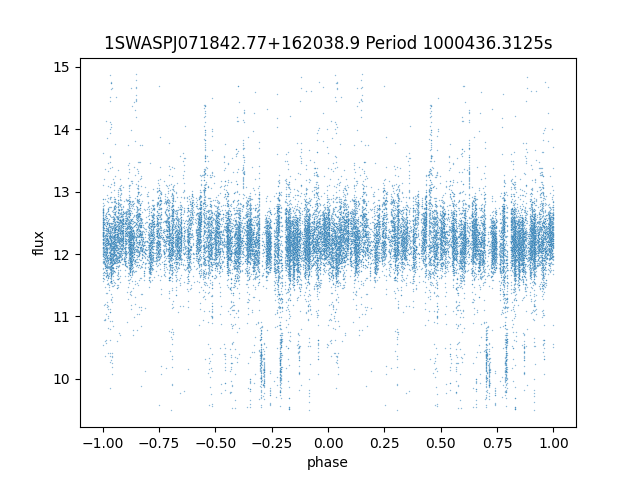 | 1SWASPJ071842.77+162038.9 | 12.29 | 1000436.3125 ~ |