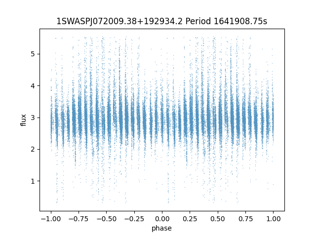 | SuperWASP ID | Mean Magnitude | Period (seconds) | Majority Classification | Folding flag | RA | Dec | Lightcurve |