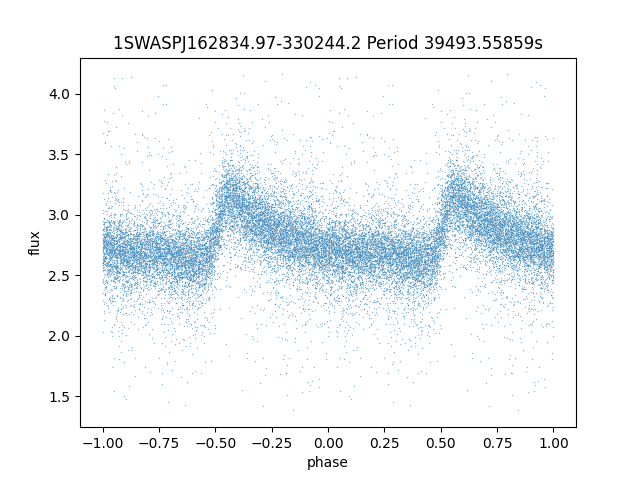 | 1SWASPJ162834.97-330244.2 | 13.89 | 39493.55859 ~ |