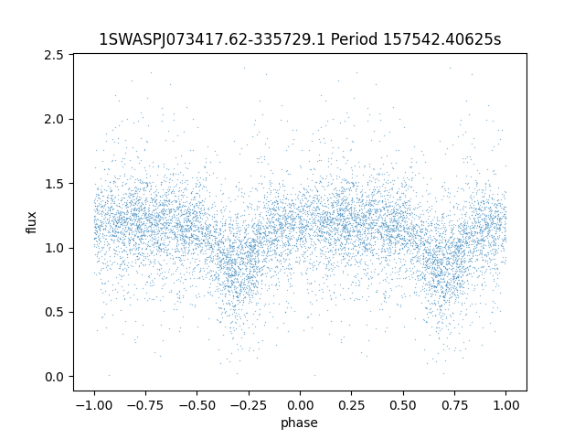 | 1SWASPJ073417.62-335729.1 | 14.91 | 157542.40625 ~ |