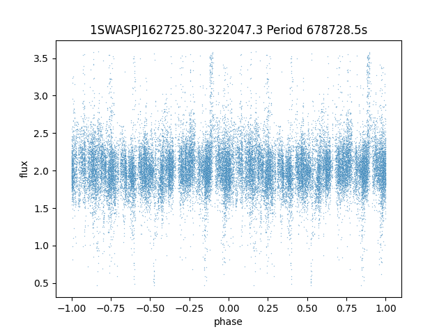 | 1SWASPJ162725.80-322047.3 | 14.23 | 678728.5 ~ |