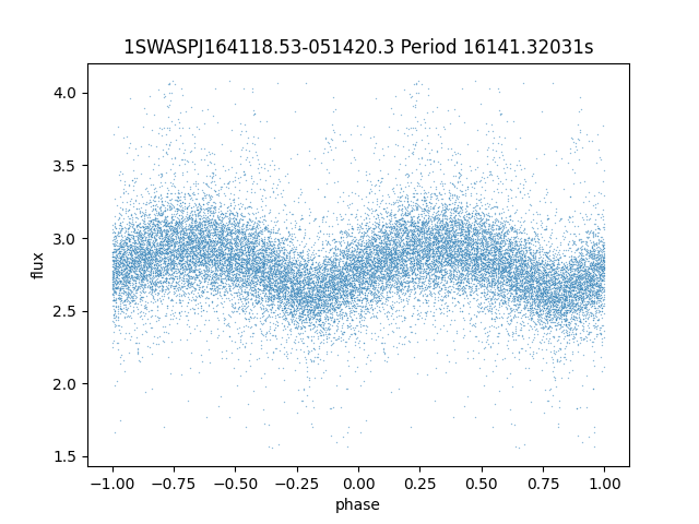 | 1SWASPJ164118.53-051420.3 | 13.87 | 16141.32031 ~ |