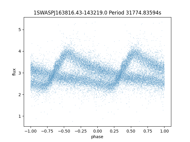 | 1SWASPJ163819.77-143210.8 | 13.23 | 31774.73047 ~ |