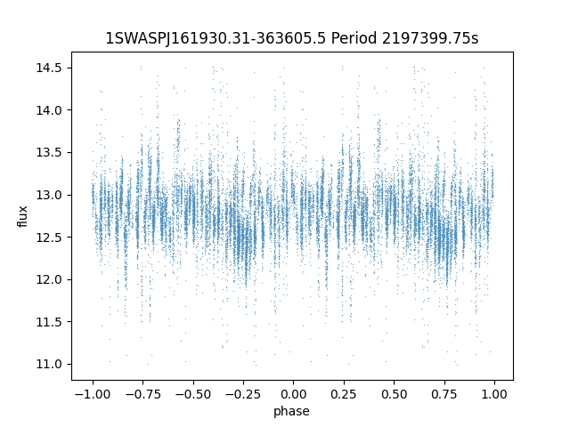 | 1SWASPJ161930.31-363605.5 | 12.24 | 2197399.75 ~ |