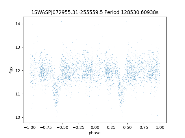 | 1SWASPJ072955.31-255559.5 | 12.31 | 128530.60938 ~ |