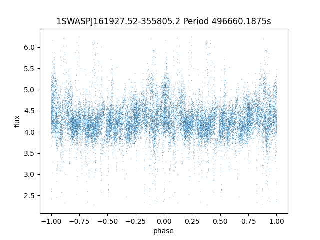 | 1SWASPJ161927.52-355805.2 | 13.42 | 496660.1875 ~ |