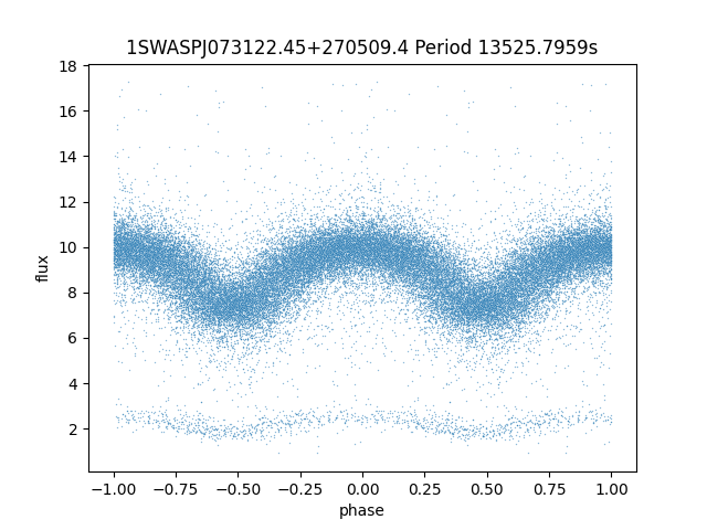 | SuperWASP ID | Mean Magnitude | Period (seconds) | Majority Classification | Folding flag | RA | Dec | Lightcurve |