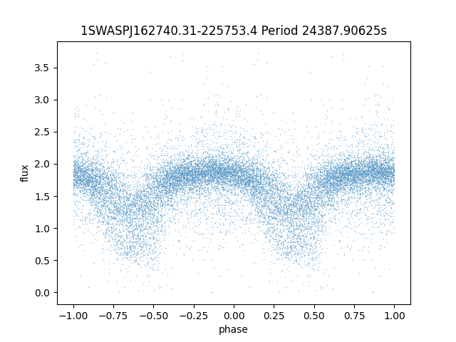 | 1SWASPJ162740.31-225753.4 | 14.47 | 24387.90625 ~ |