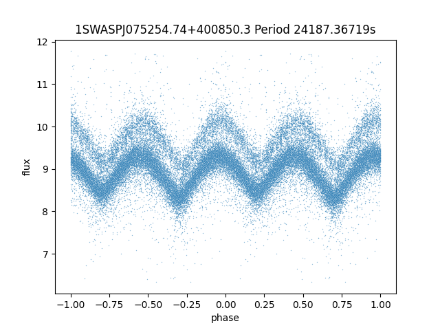 | SuperWASP ID | Mean Magnitude | Period (seconds) | Majority Classification | Folding flag | RA | Dec | Lightcurve |
