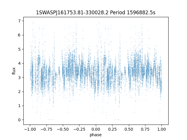 | 1SWASPJ161753.81-330028.2 | 13.69 | 1596882.5 ~ |
