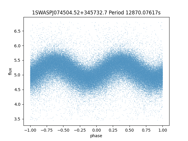 | 1SWASPJ074504.52+345732.7 | 13.23 | 12870.07617 ~ |