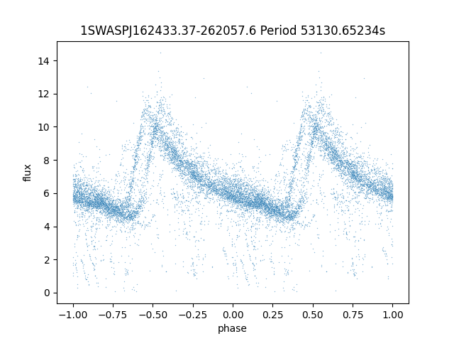 | 1SWASPJ162433.37-262057.6 | 12.98 | 53130.65234 ~ |