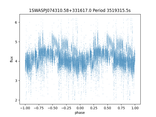 | SuperWASP ID | Mean Magnitude | Period (seconds) | Majority Classification | Folding flag | RA | Dec | Lightcurve |