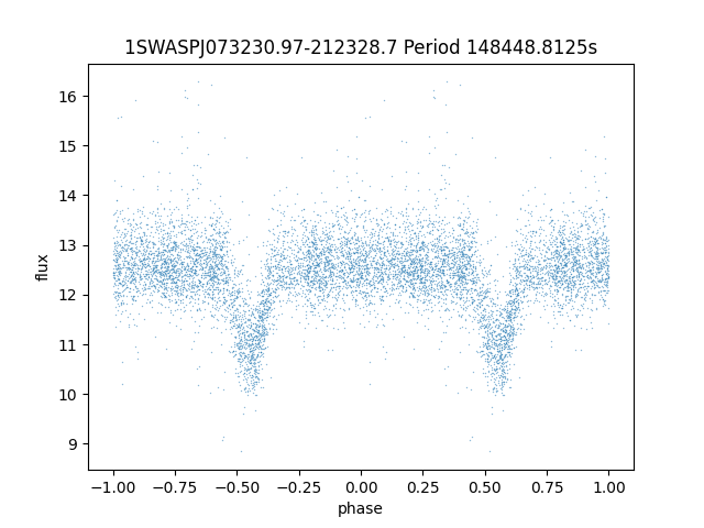 | 1SWASPJ073230.97-212328.7 | 12.27 | 148448.8125 ~ |
