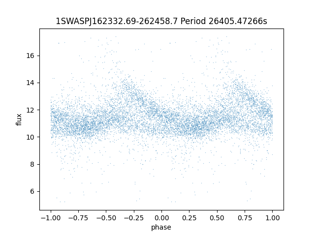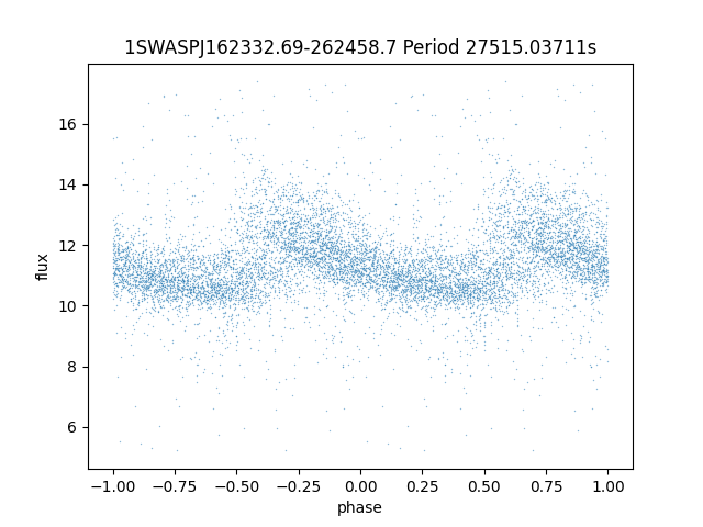 | 1SWASPJ162332.69-262458.7 | 12.36 | 27515.03711 ~ |