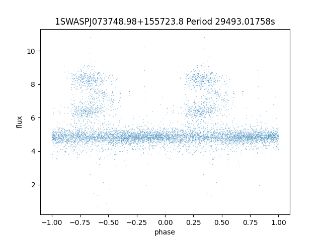 | 1SWASPJ073748.98+155723.8 | 13.16 | 29493.01758 ~ |