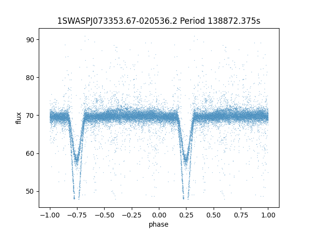 | 1SWASPJ073353.67-020536.2 | 10.41 | 138872.375 ~ |