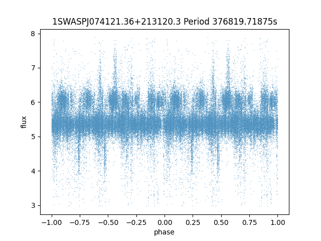 | 1SWASPJ074121.36+213120.3 | 13.15 | 376819.71875 ~ |