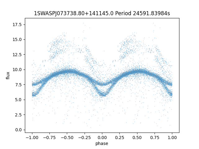 | SuperWASP ID | Mean Magnitude | Period (seconds) | Majority Classification | Folding flag | RA | Dec | Lightcurve |