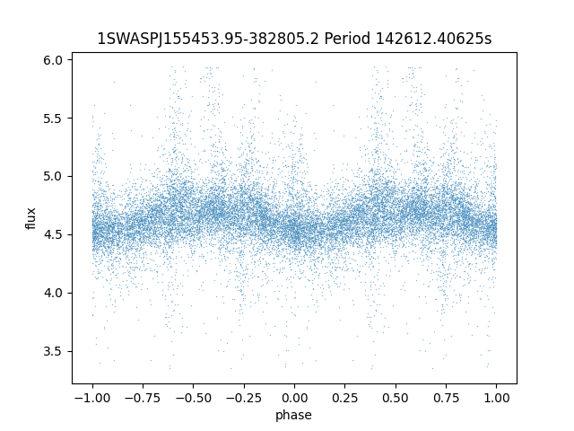 | 1SWASPJ155453.95-382805.2 | 13.33 | 142612.40625 ~ |