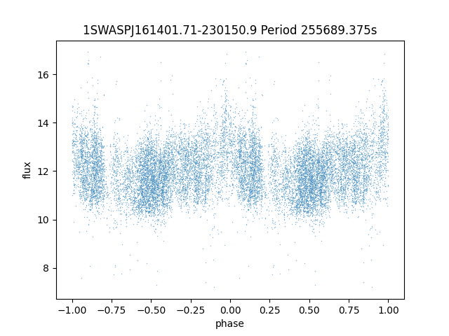 | 1SWASPJ161401.71-230150.9 | 12.30 | 255689.375 ~ |