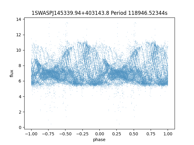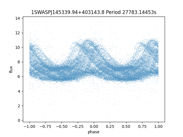 | 1SWASPJ145339.94+403143.8 | 12.85 | 27783.14453 ~ |
