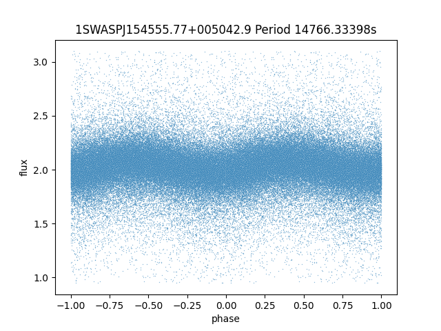 | 1SWASPJ154555.77+005042.9 | 14.24 | 14766.33398 ~ |
