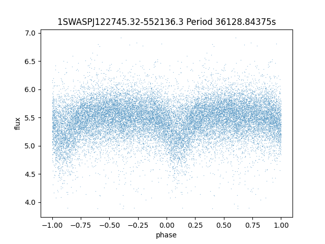 | 1SWASPJ122745.32-552136.3 | 13.16 | 36128.84375 ~ |