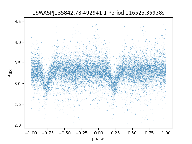 | 1SWASPJ135842.78-492941.1 | 13.71 | 116525.35938 ~ |