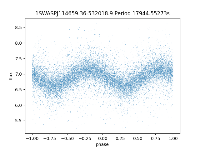 | 1SWASPJ114659.36-532018.9 | 12.90 | 17944.55273 ~ |