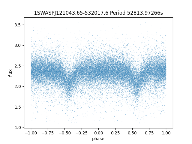 | 1SWASPJ120549.14-532212.5 | 12.89 | 15550.75 ~ |
