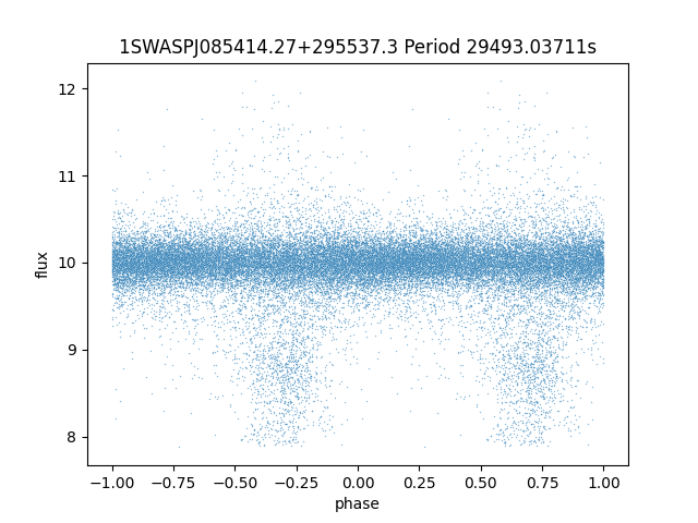 | 1SWASPJ085414.27+295537.3 | 12.51 | 29493.03711 ~ |