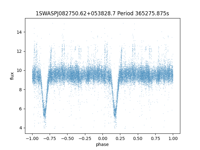 | 1SWASPJ082750.62+053828.7 | 12.57 | 365275.875 ~ |
