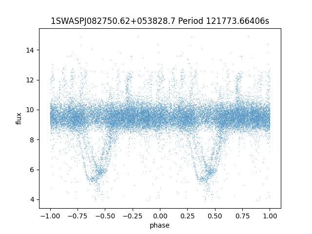 | 1SWASPJ082750.62+053828.7 | 12.57 | 121773.66406 ~ |