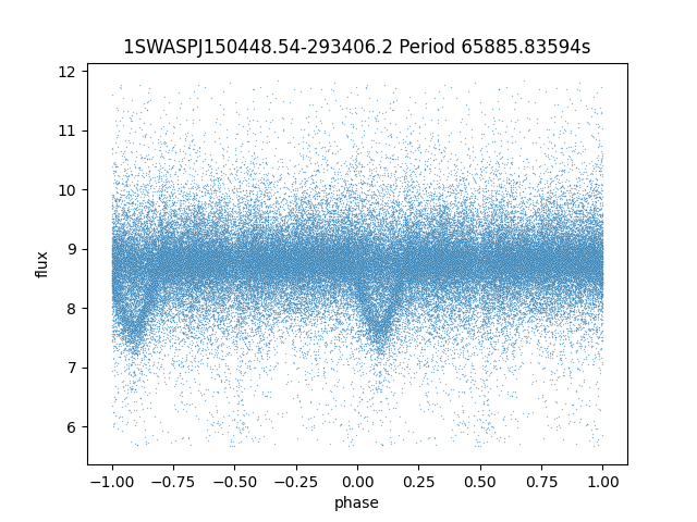 | 1SWASPJ150448.54-293406.2 | 12.65 | 65885.83594 ~ |